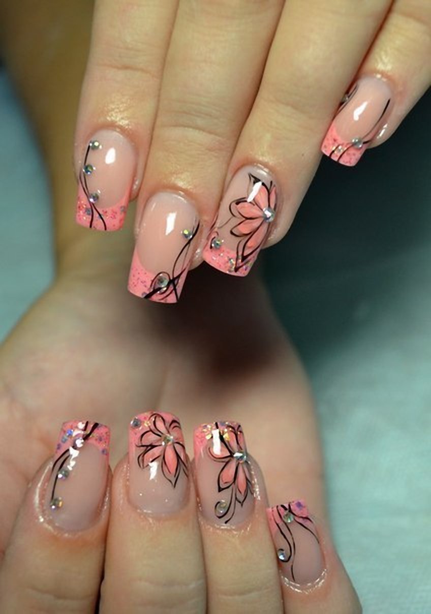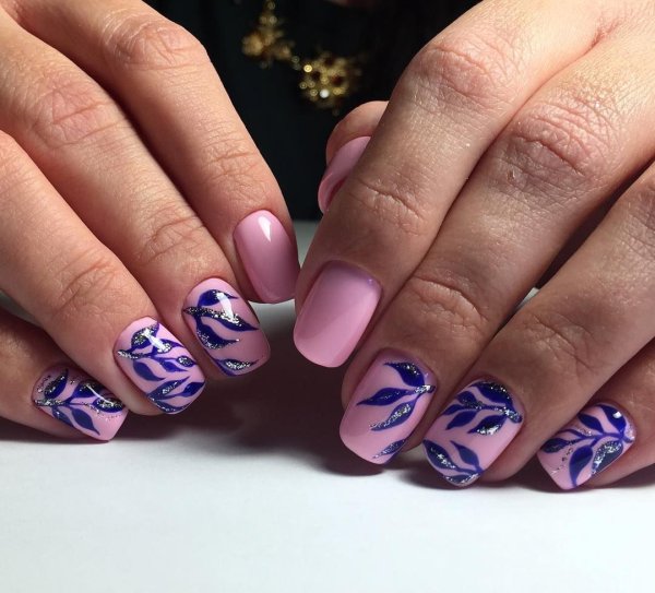 ![Розовый маникюр с узором]()