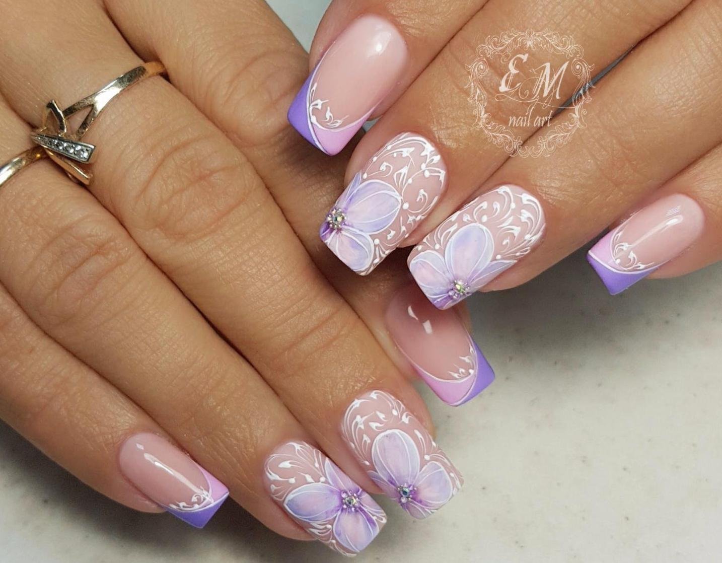 Ногти сиреневые с рисунком