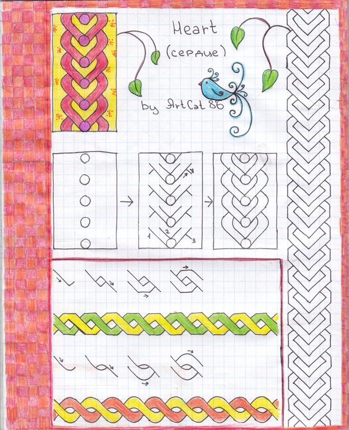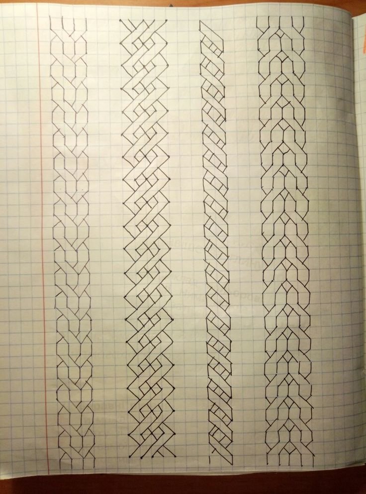 ![Косички по клеточкам в тетради]()