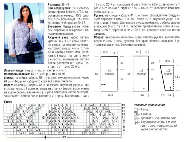 ![Вяжем ажурный джемпер спицами для женщин схемы]()