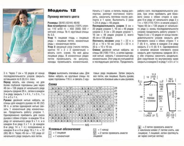![Пуловер из хлопка спицами для женщин со схемами]()