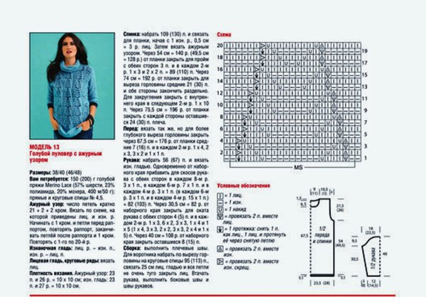 ![Пуловер женский ажурный спицами схемы с описанием]()
