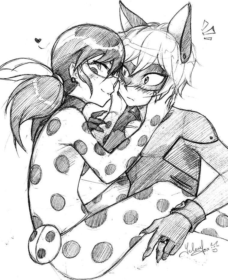 ![Рисунки леди баг и супер кот для срисовки]()