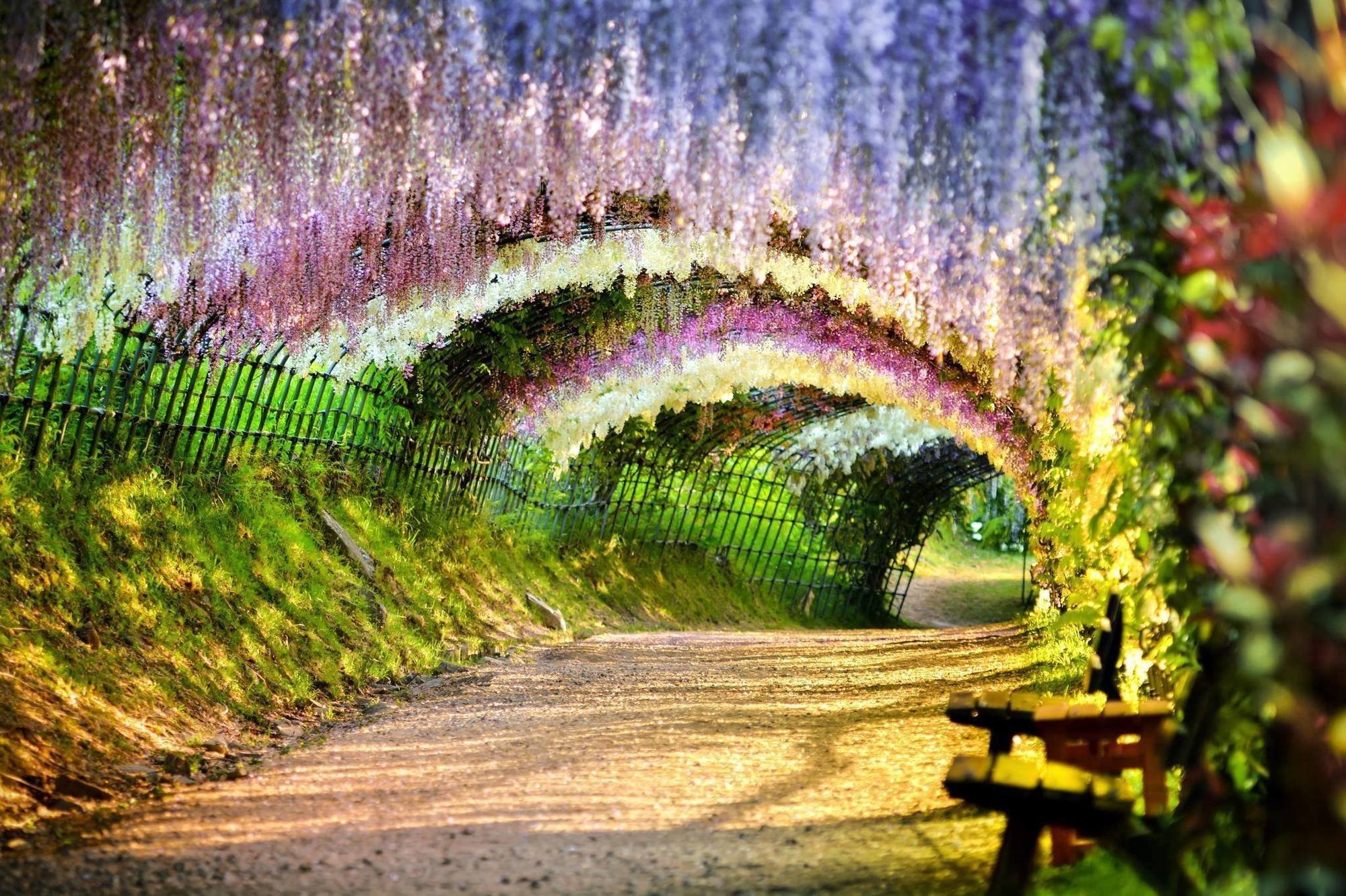 ![Тоннель глициний, сад Кавати Фудзи, Япония]()