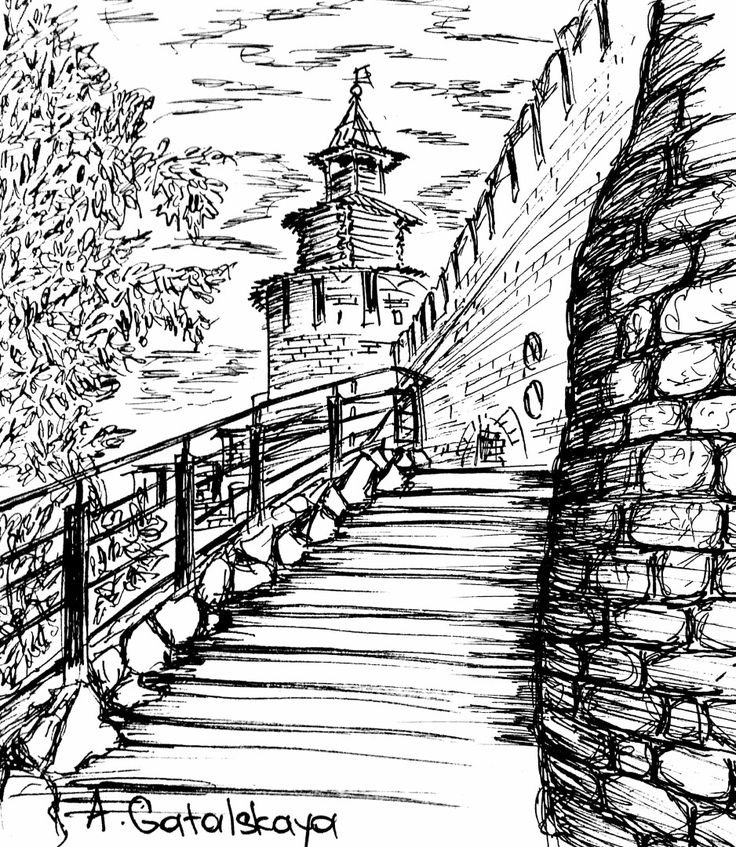 ![Чкаловская лестница Нижегородского Кремля рисунок]()
