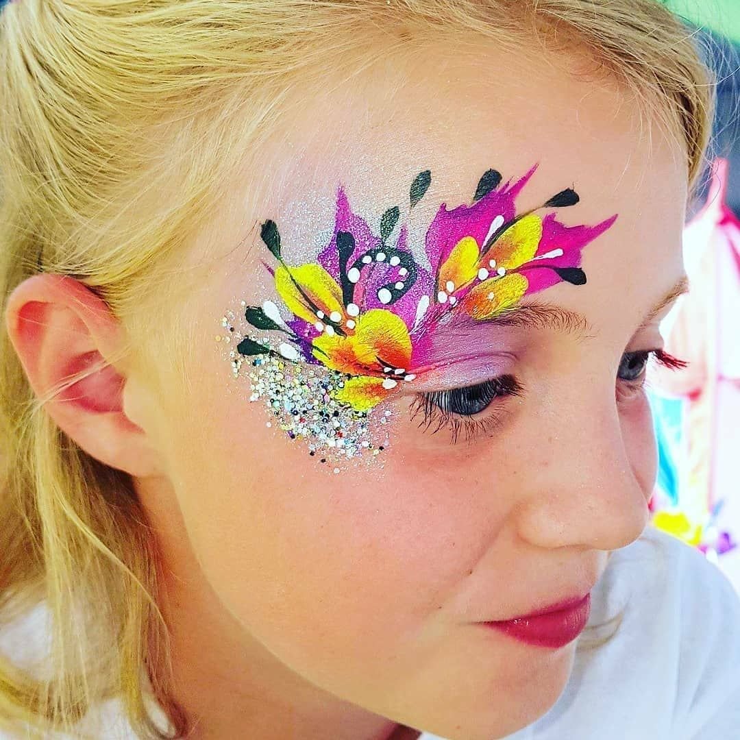 ![Аквагрим цветок на щеке]()