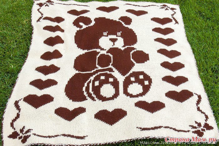![Схемы вязания спицами детских пледов для новорожденных]()