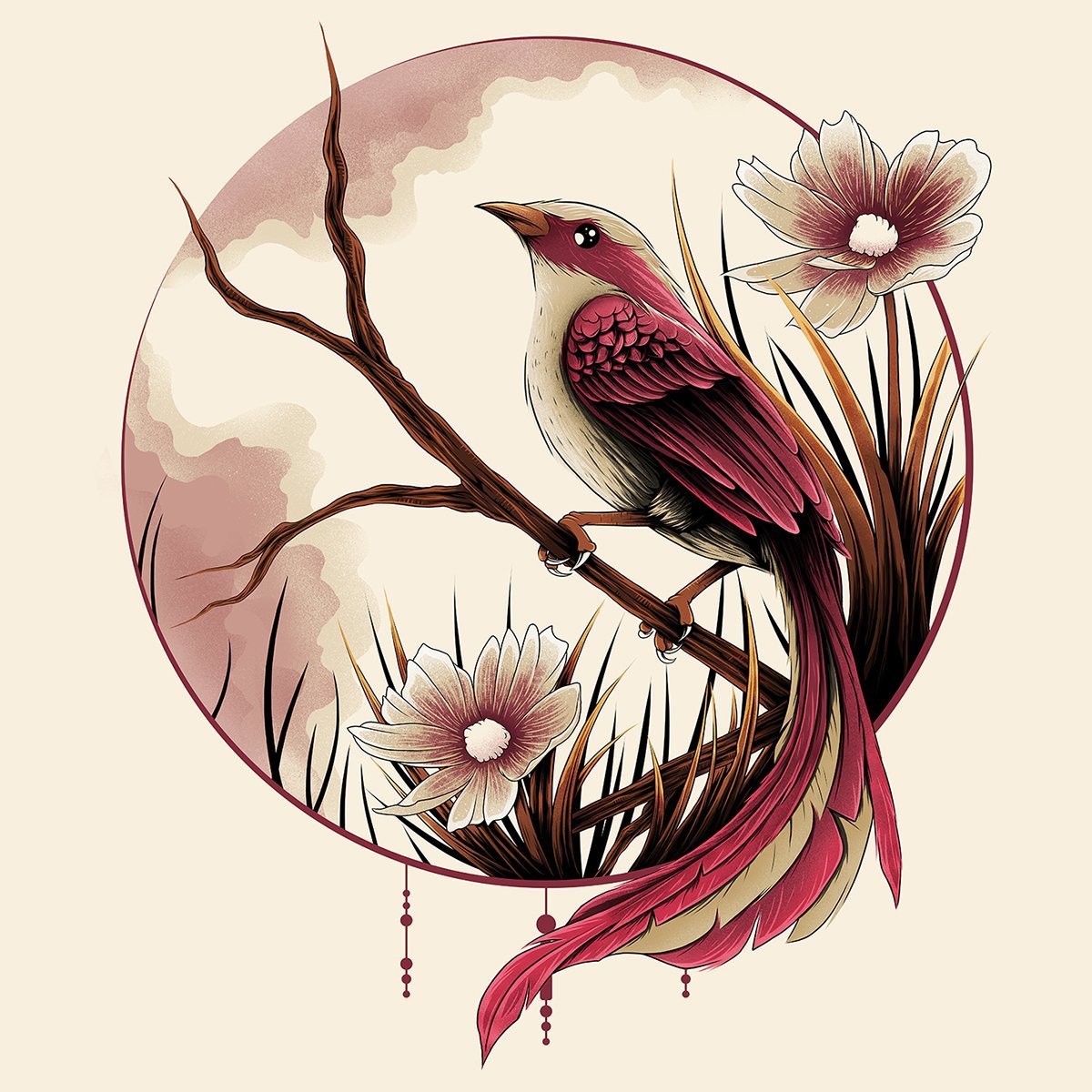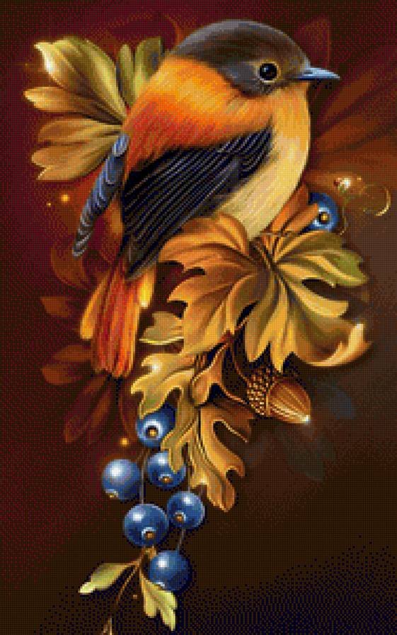 ![Птица на ветке арт]()