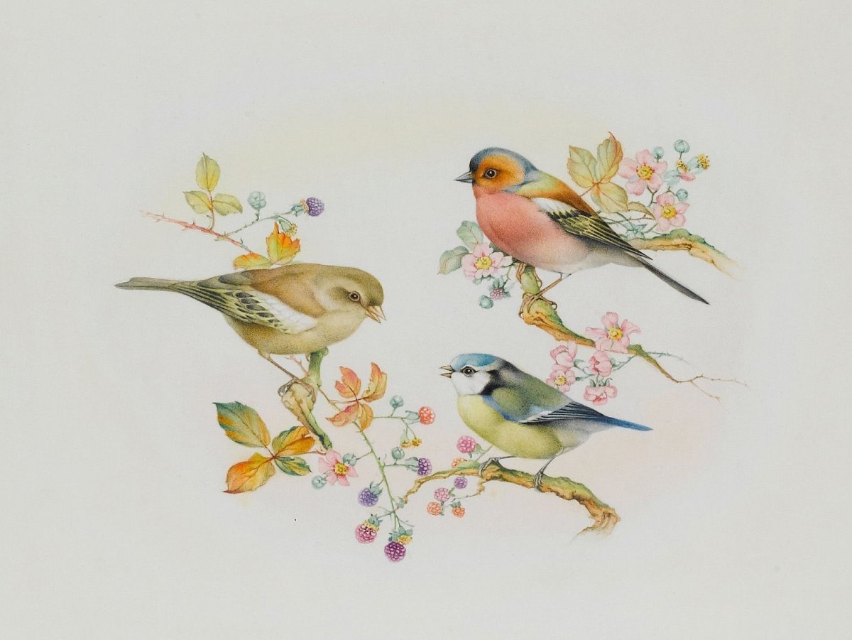 ![Пастельные цветы и птицы]()