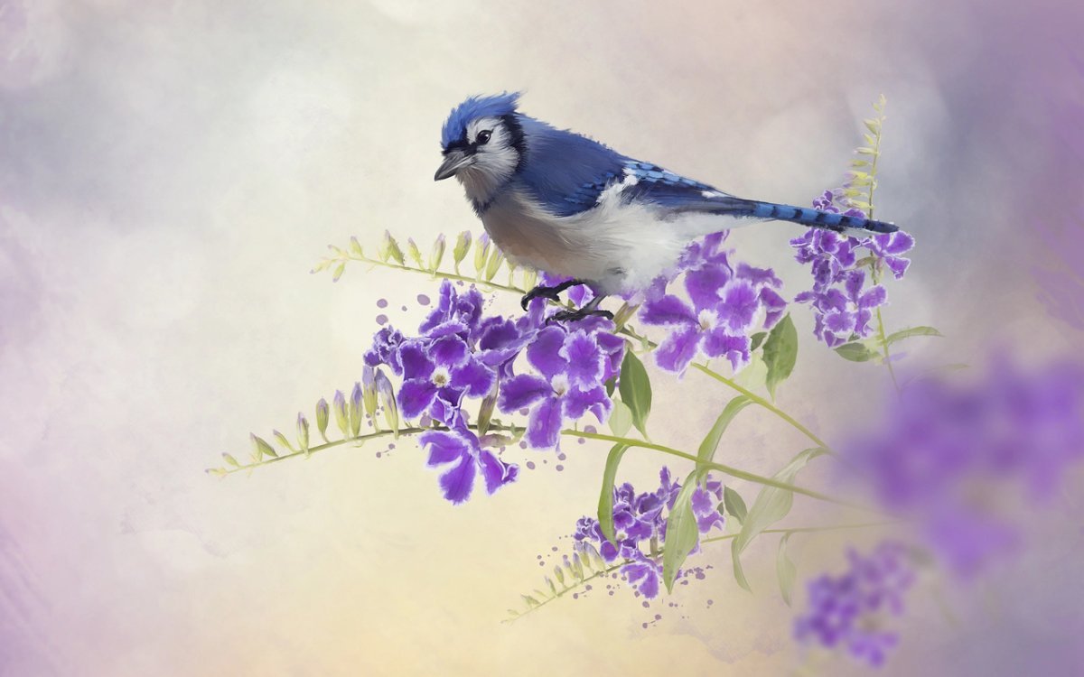 Пастельные цветы и птицы