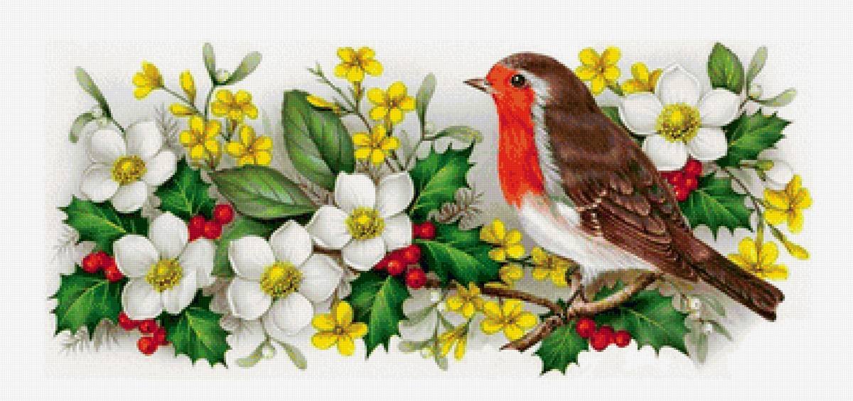 Птичка с цветами