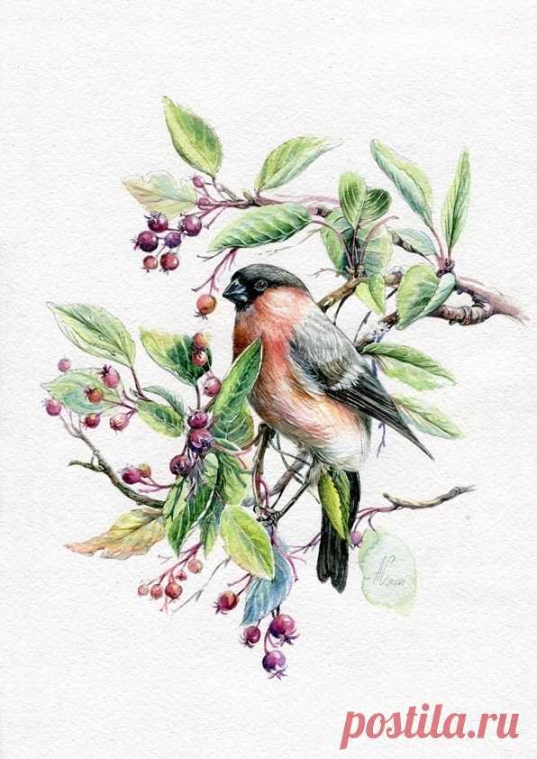 Птицы акварелью