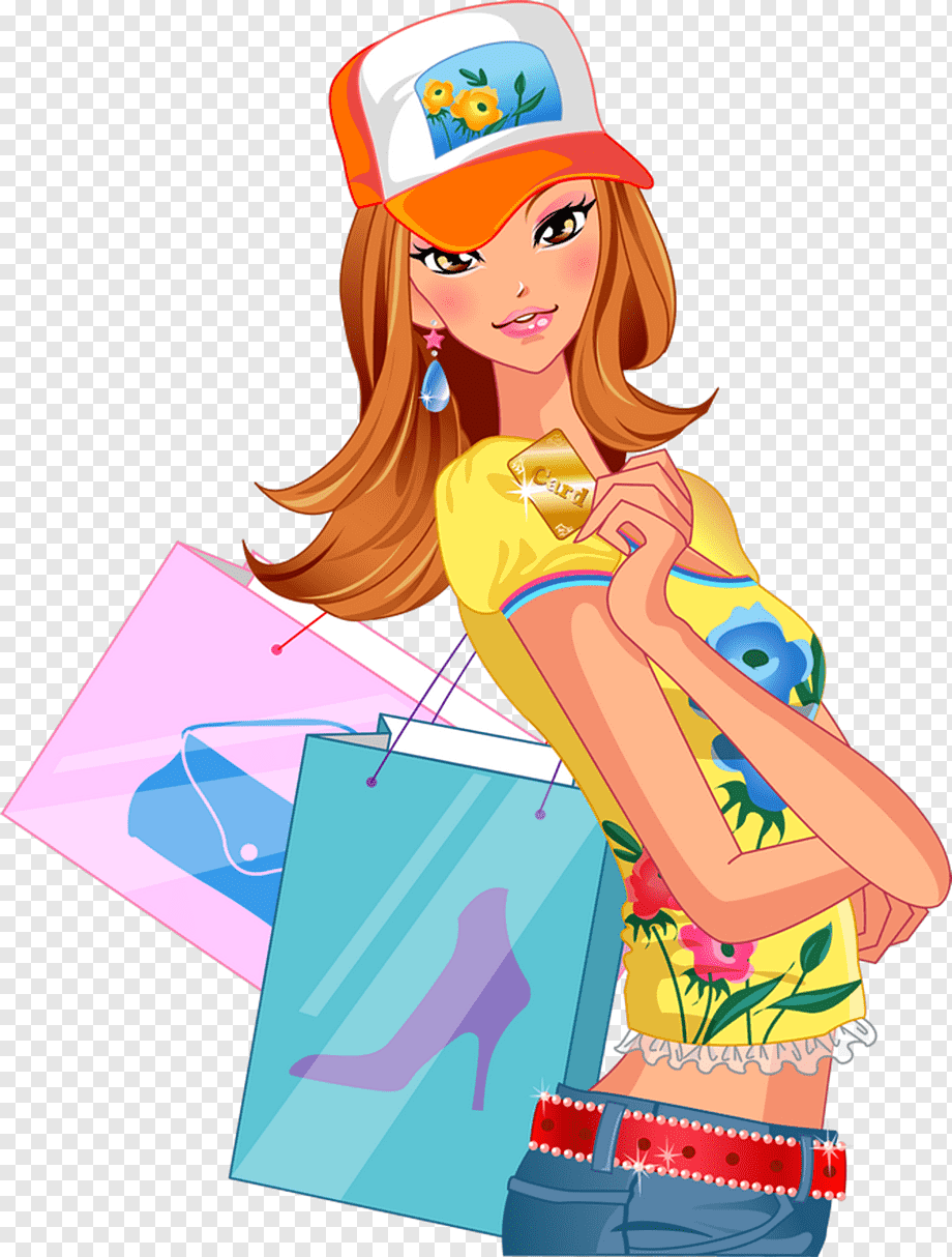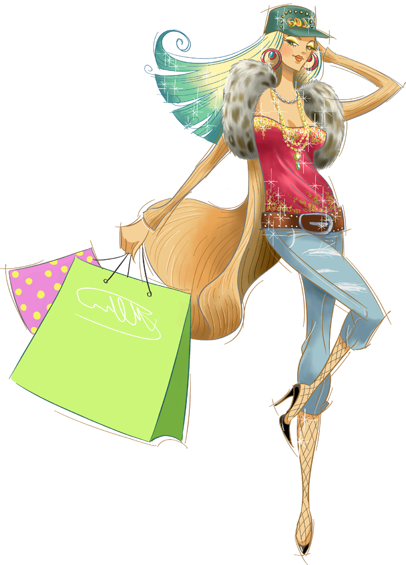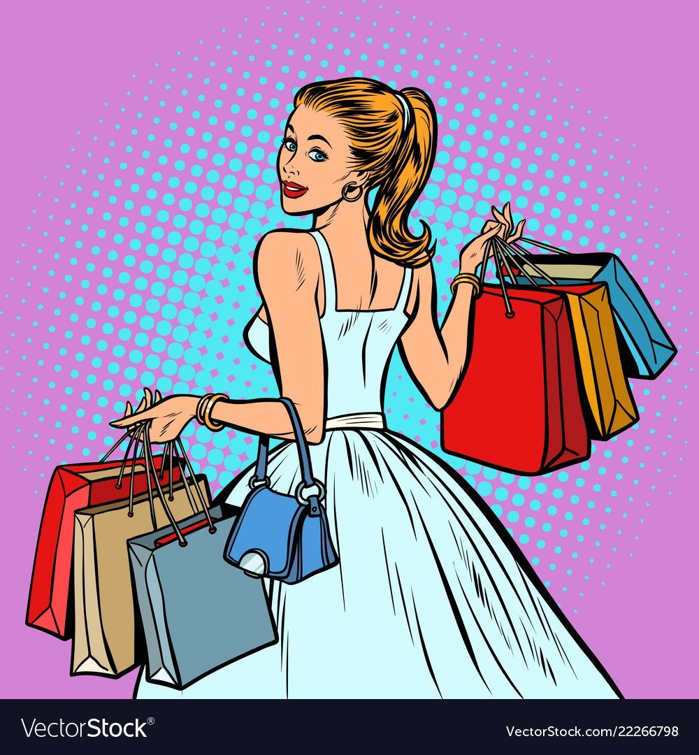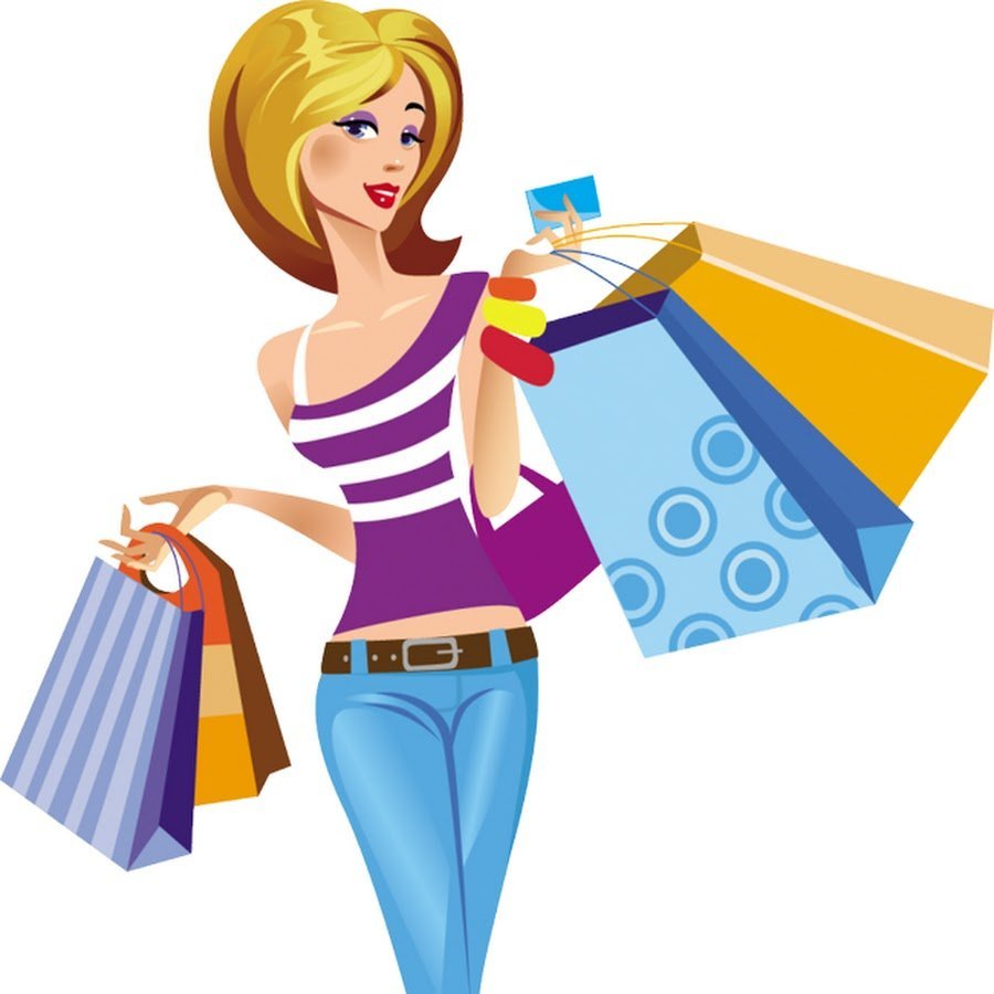 ![Нарисованная девушка с покупками]()