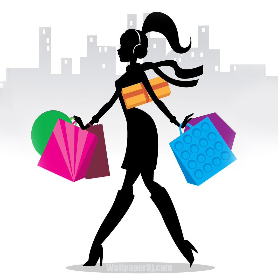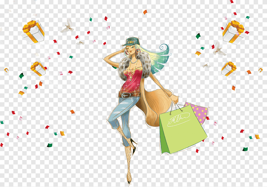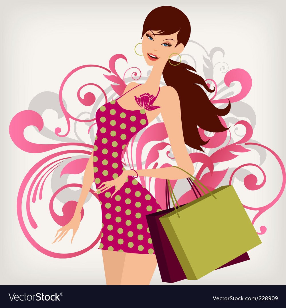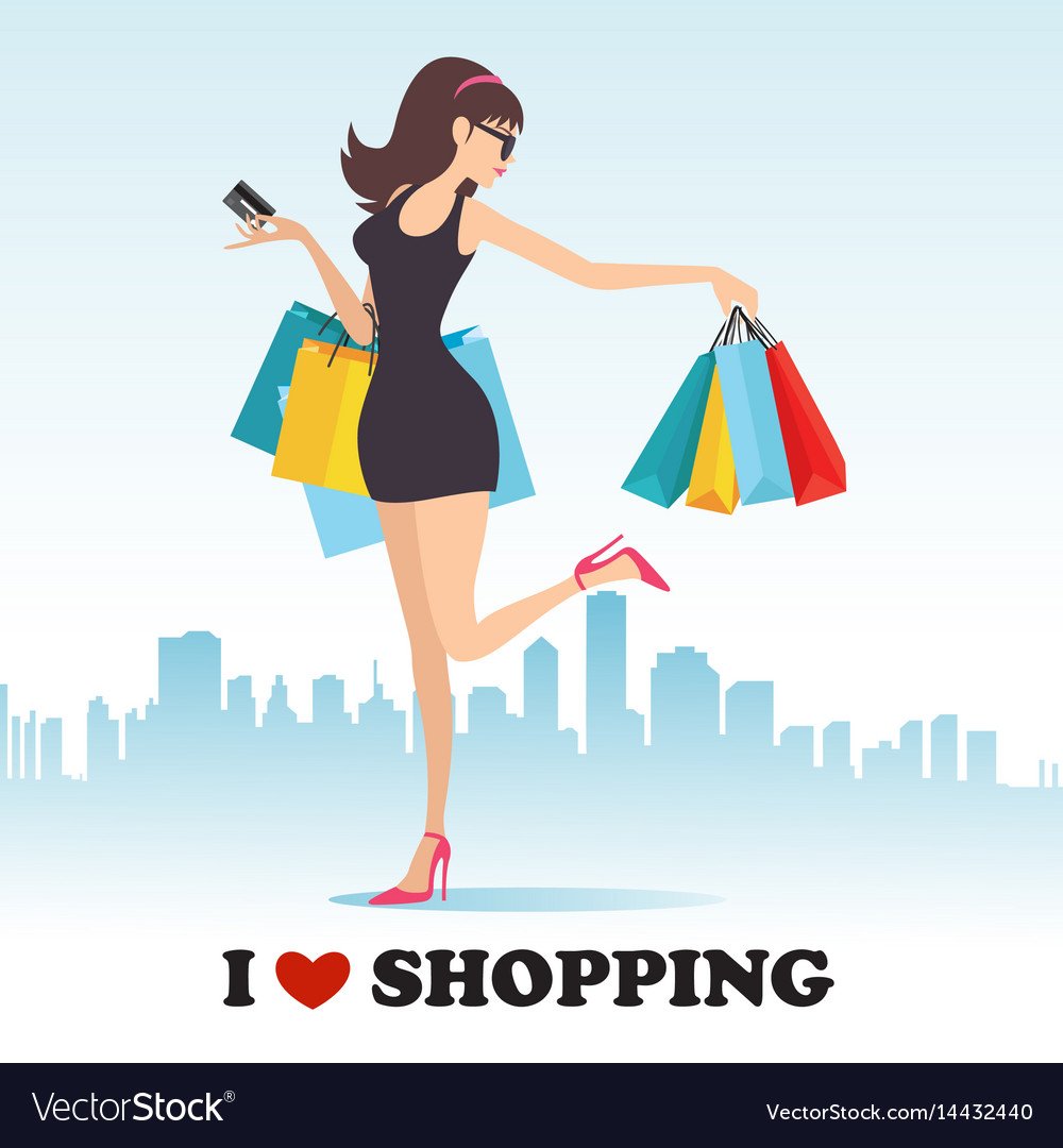 ![Нарисованная девушка с покупками]()