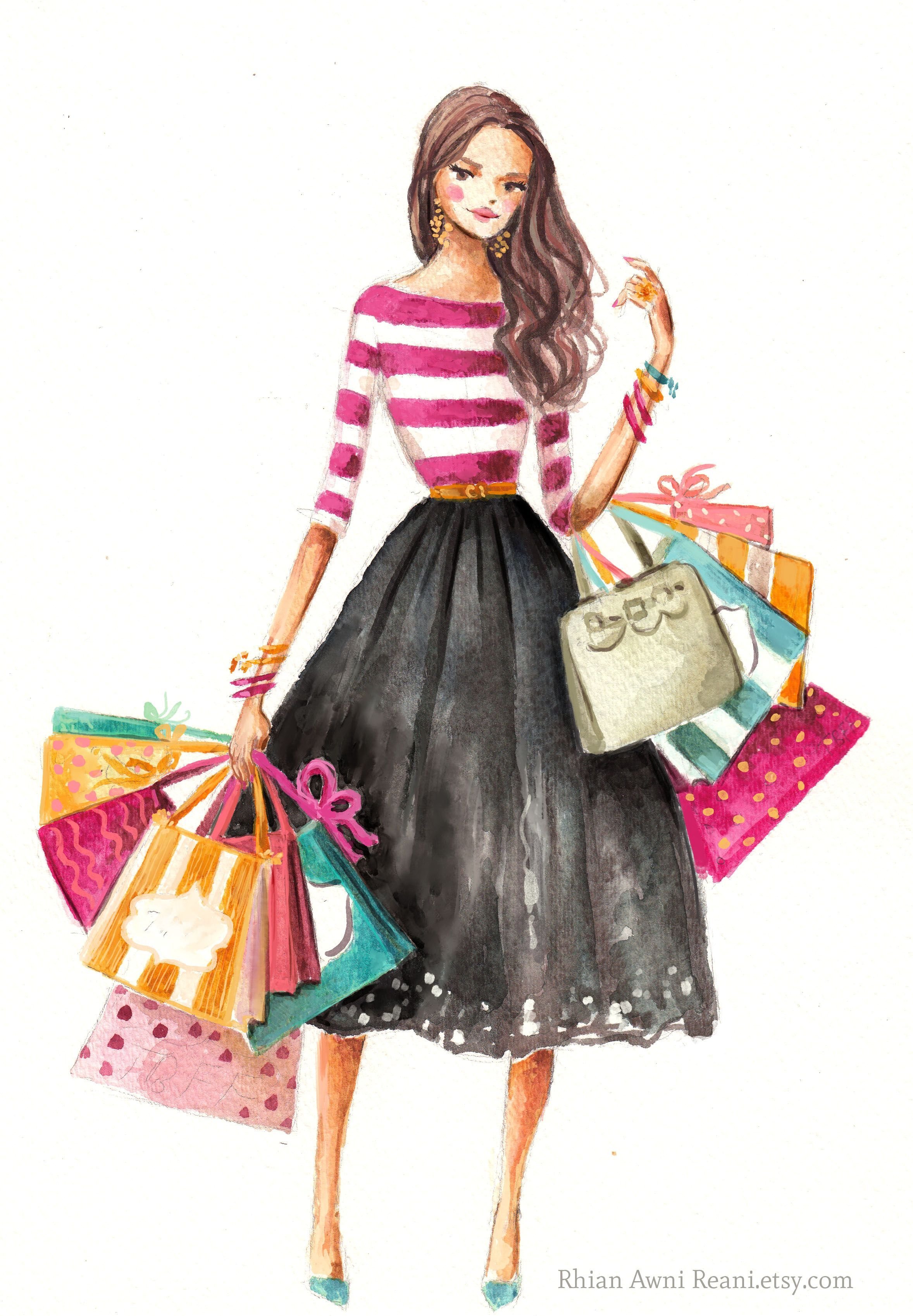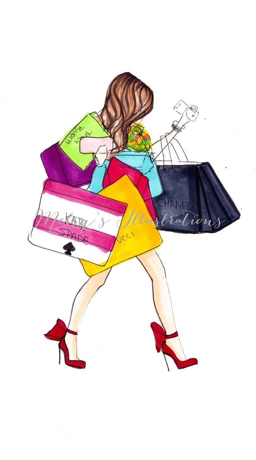 Фэшн иллюстрации шопинг
