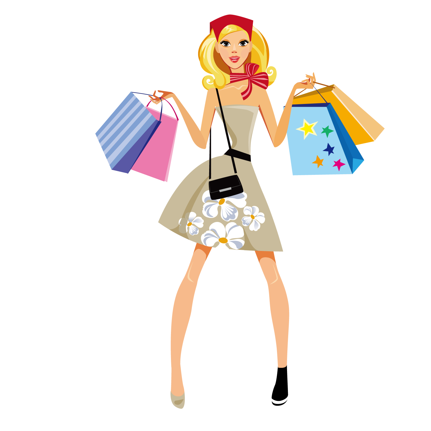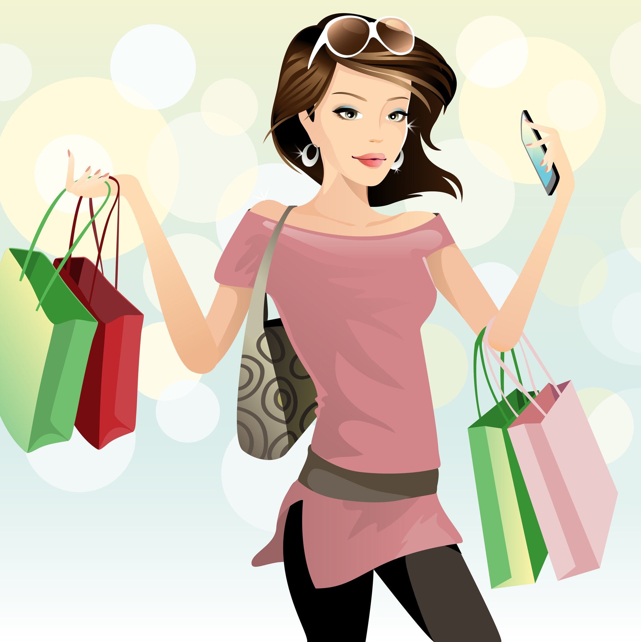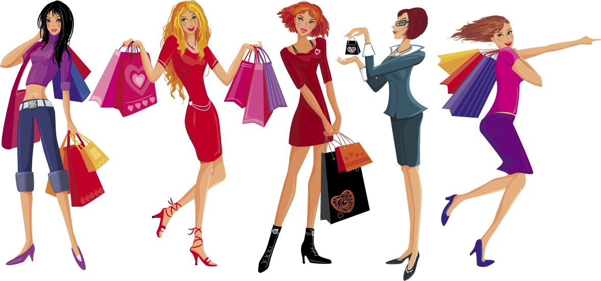 ![Рисованная девушка с покупками]()