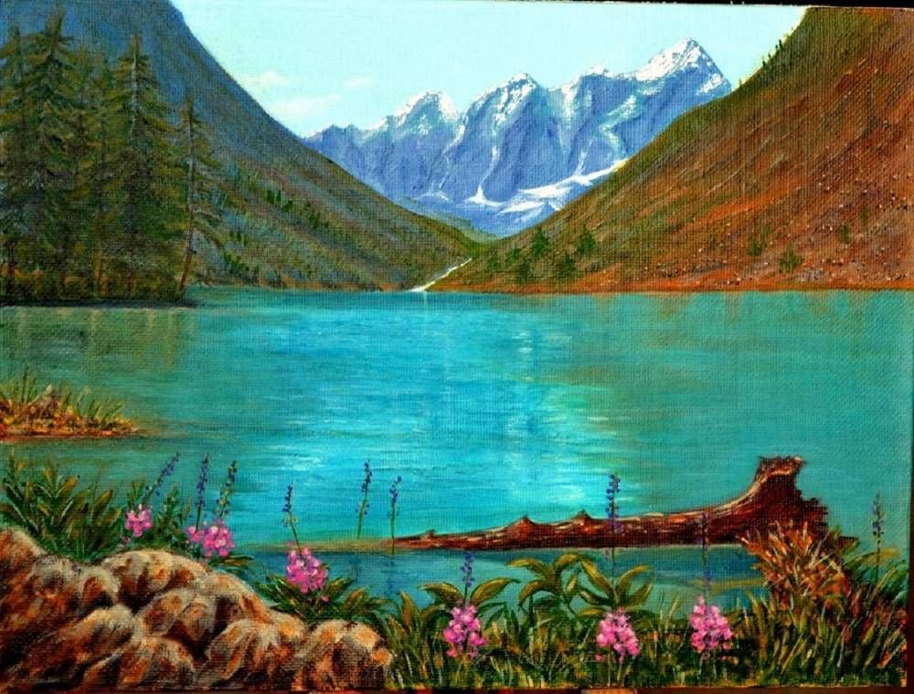 ![Живопись горный пейзаж акрил Алтай]()