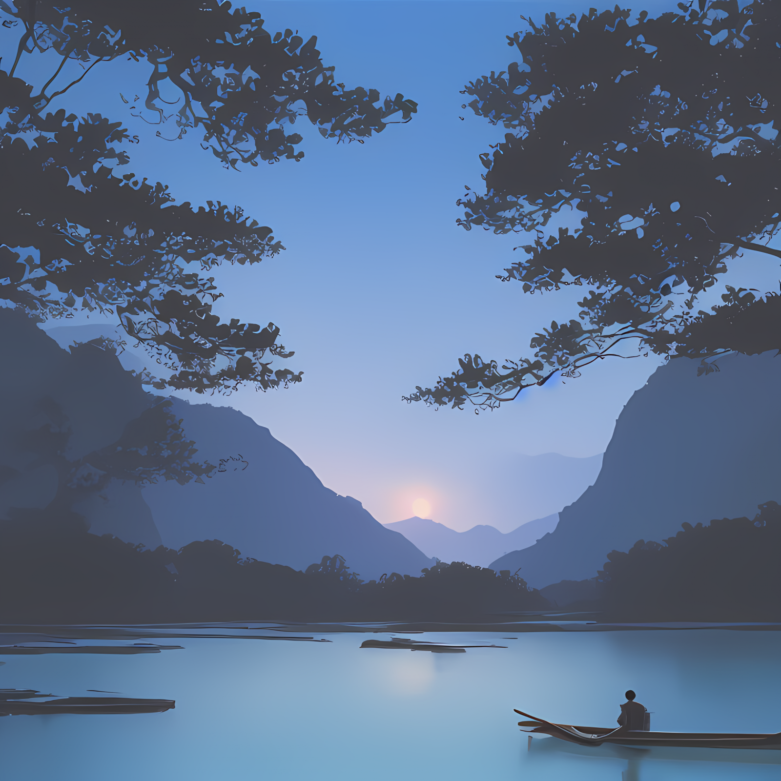 ![Картина с лодкой на реке]()