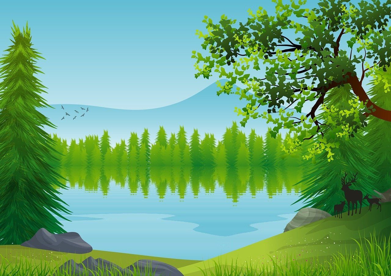 ![Фон лес с озером для детей]()