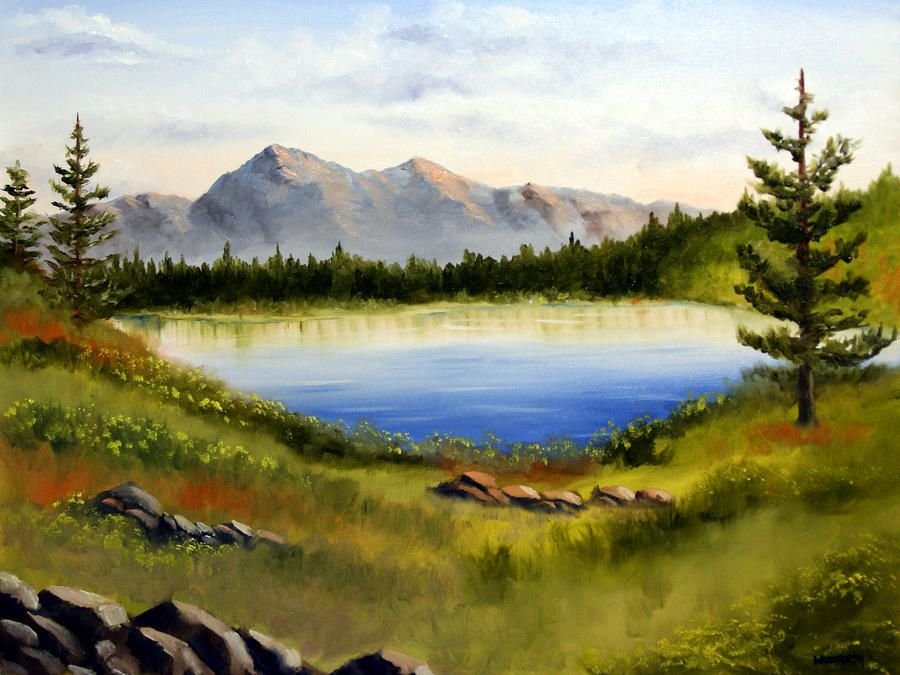 ![Пейзаж с озером в живописи]()