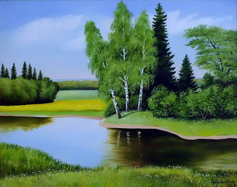 ![Летний пейзаж масляными красками]()