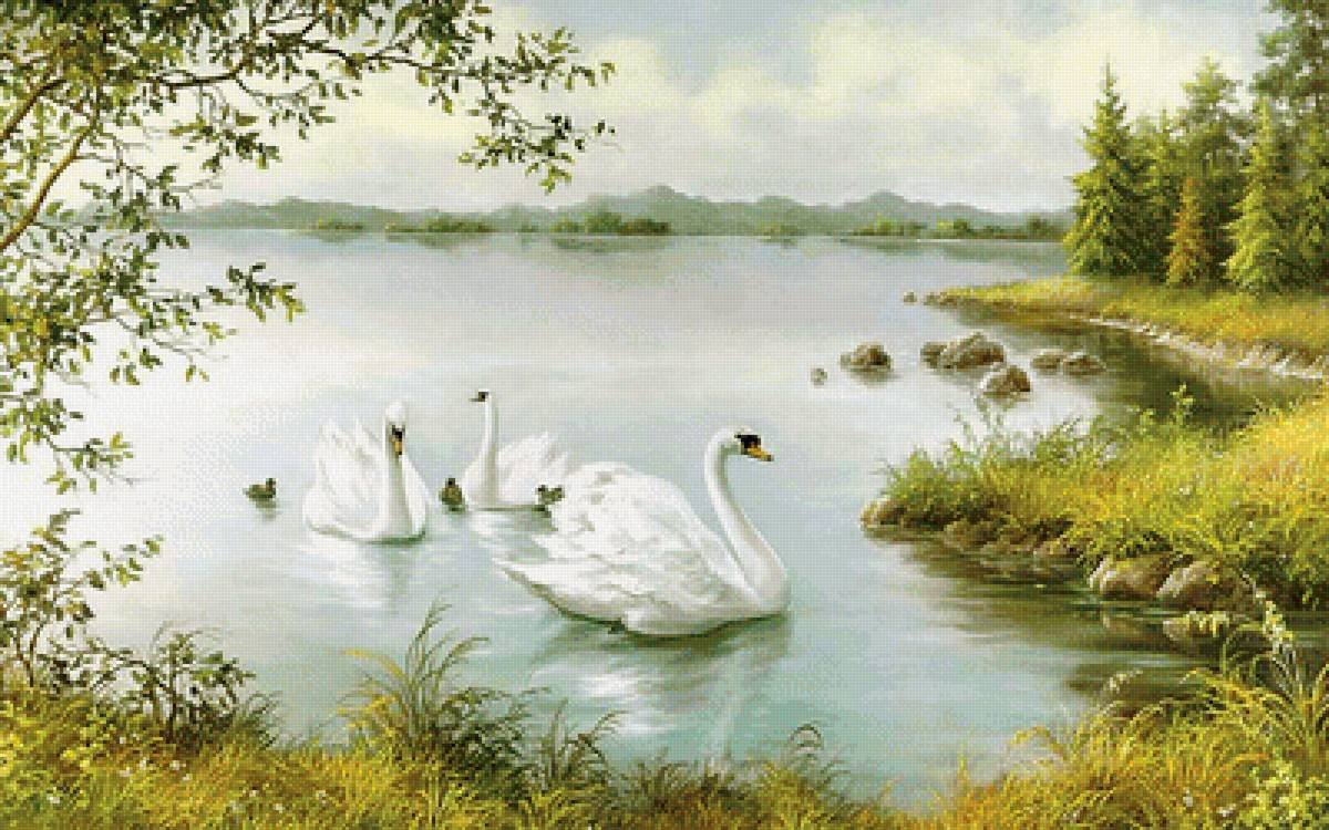 ![Пейзаж с лебедями]()