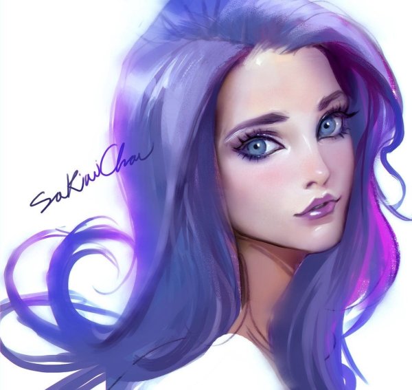 ![Нарисованная девушка с фиолетовыми волосами]()
