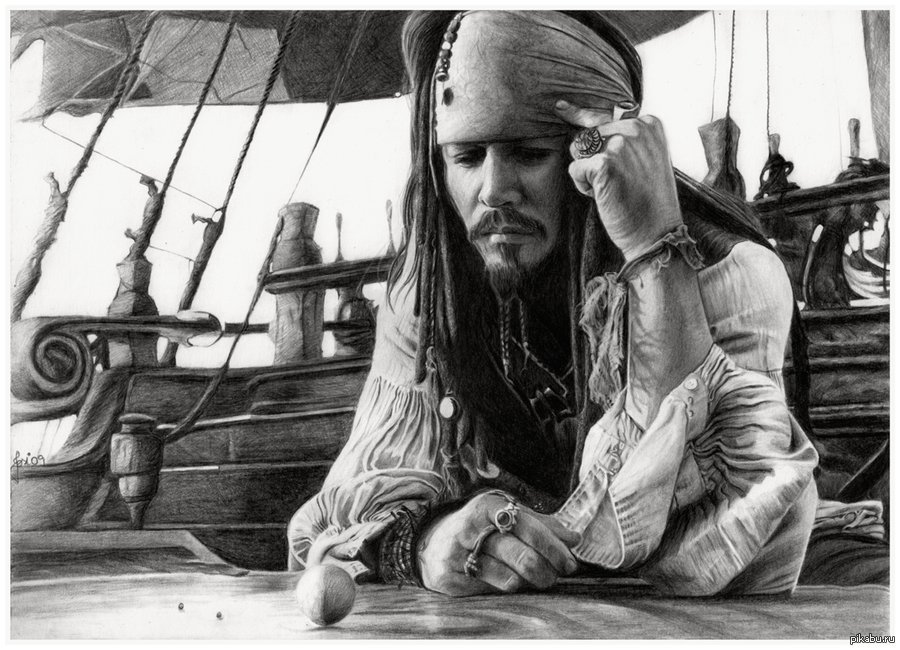 ![Капитан Джек Воробей чб]()
