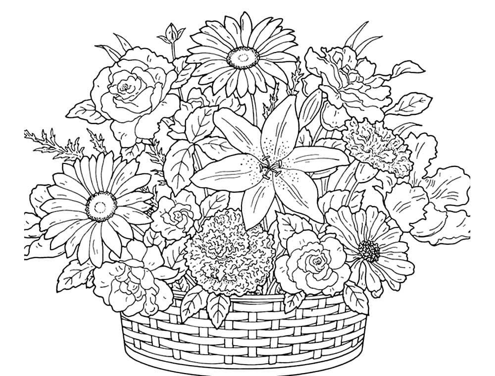 Раскраска цветы в корзине