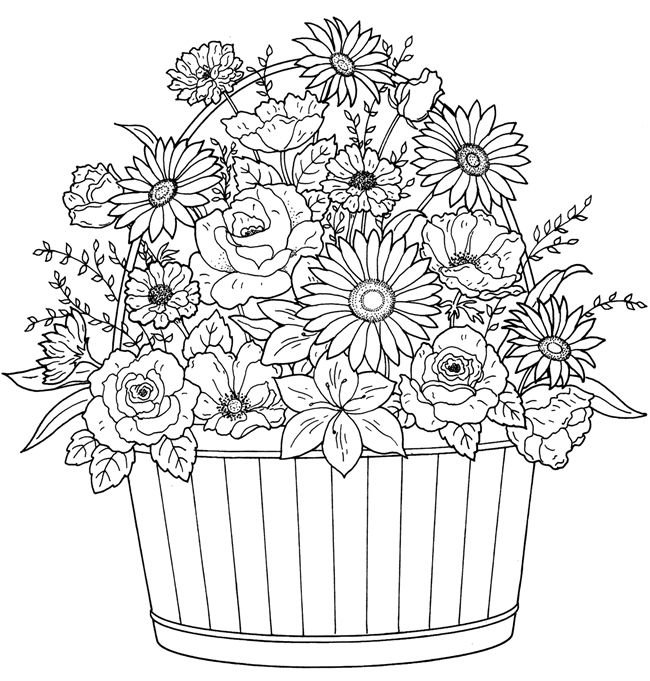 Корзинка с цветами раскраска