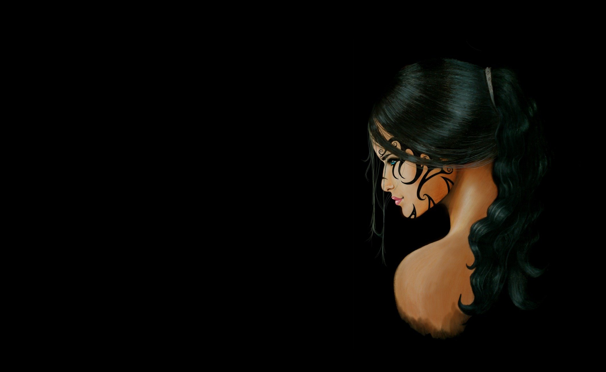 Нарисованная девушка на черном фоне