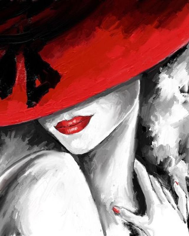 ![Девушка в красной шляпе картина]()