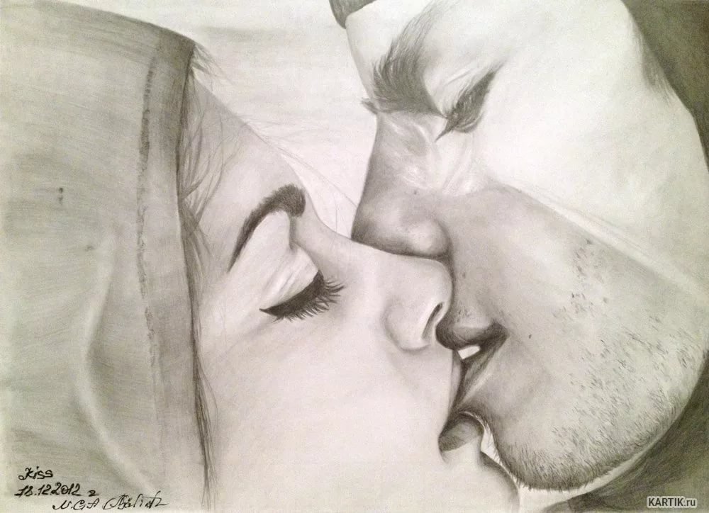 ![Поцелуй рисунок карандашом]()