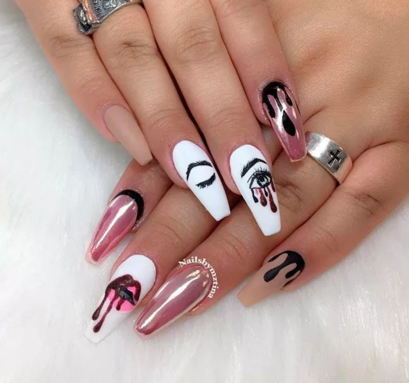 ![Маникюр на длинные ногти с рисунком]()