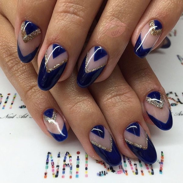 ![Синий френч на ногтях]()