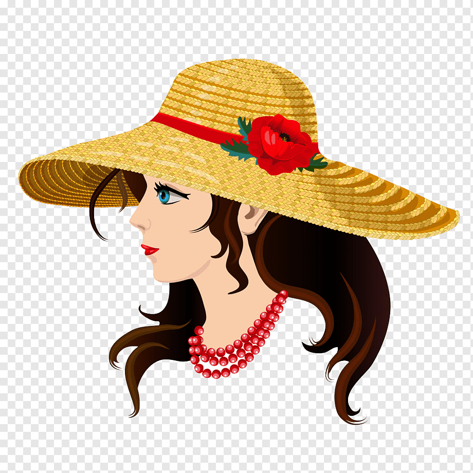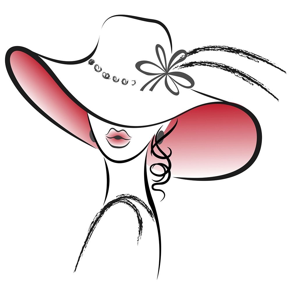 ![Женщина в шляпе рисунок]()