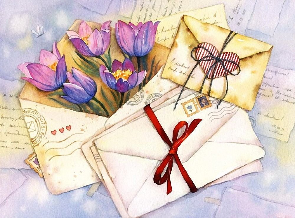 ![Открытка с конвертом и цветами]()
