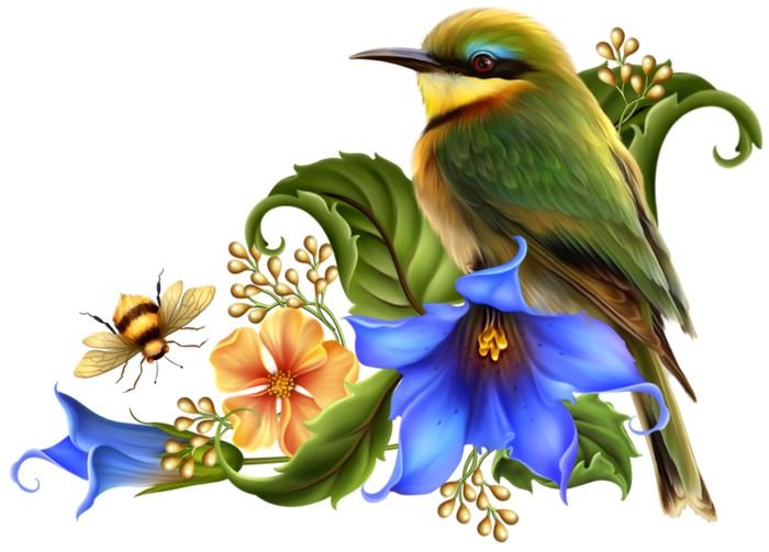 ![Весенние птицы на прозрачном фоне]()