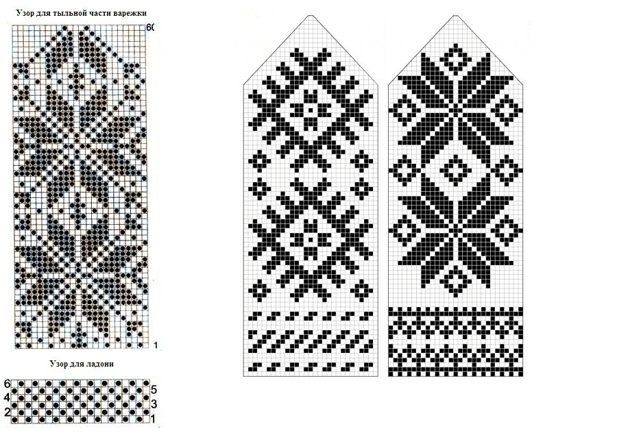 ![Жаккардовые узоры для варежек спицами схемы и описание]()