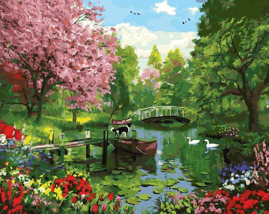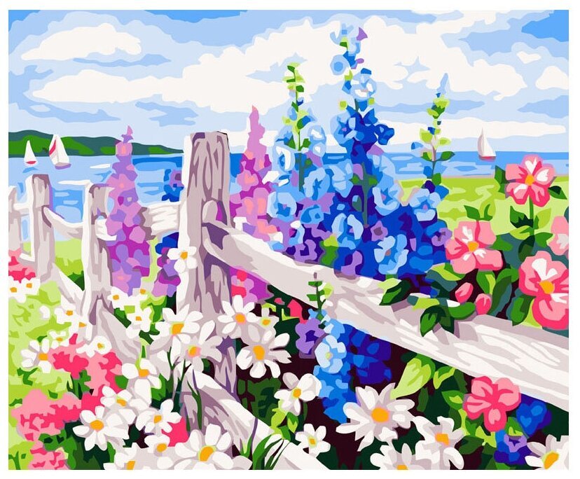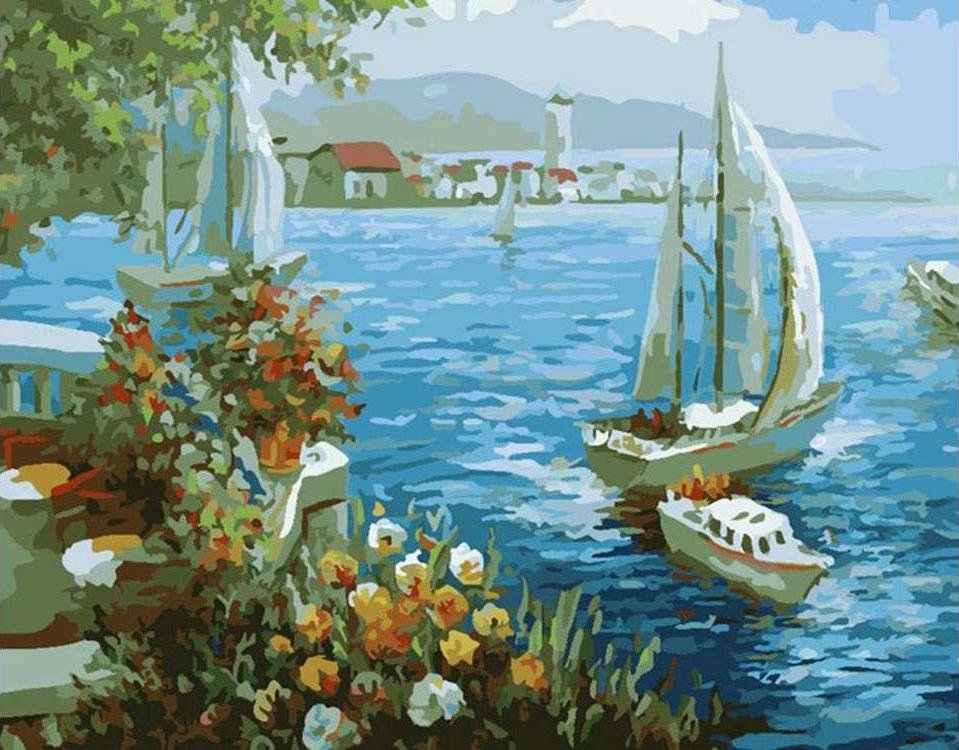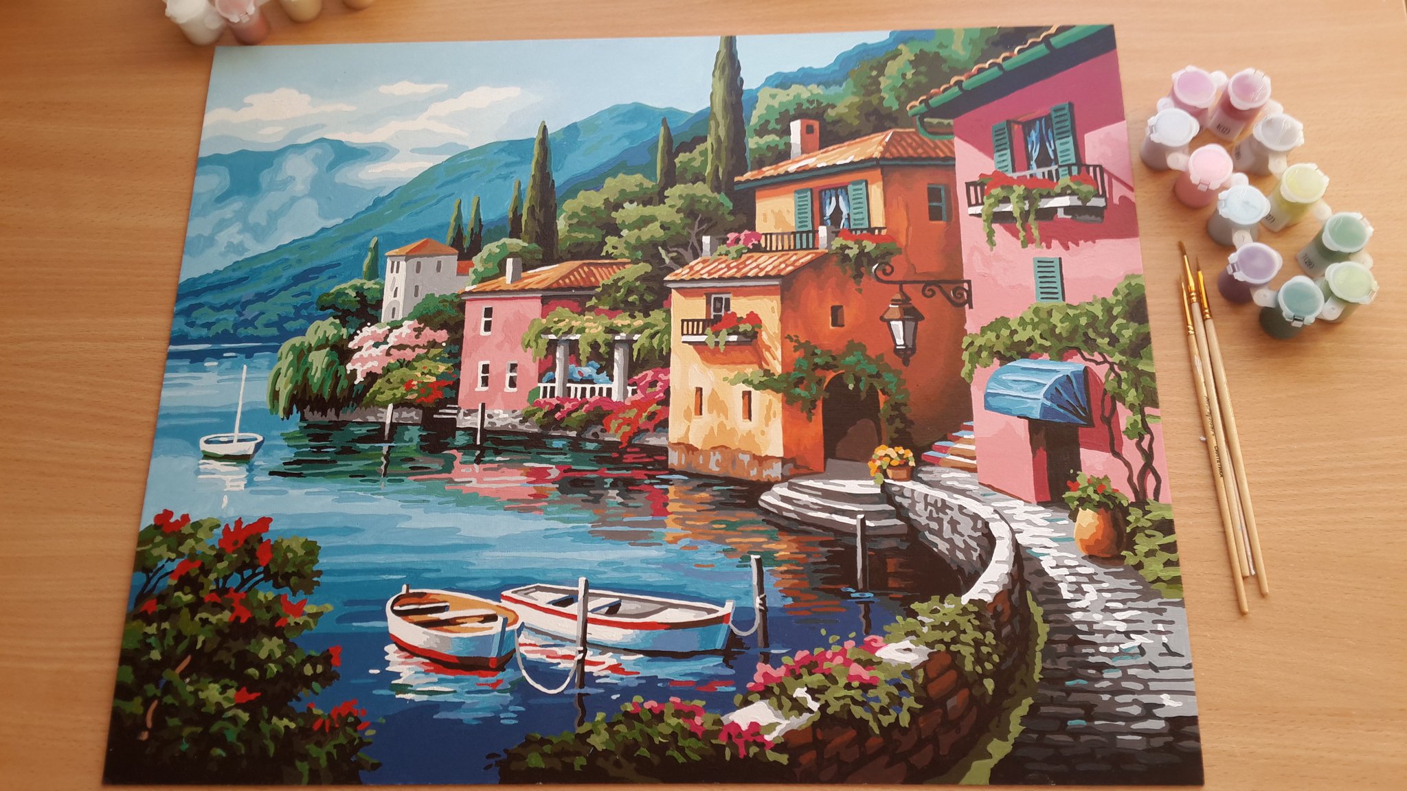Dimensions картина по номерам "деревня на берегу" 41х51 см