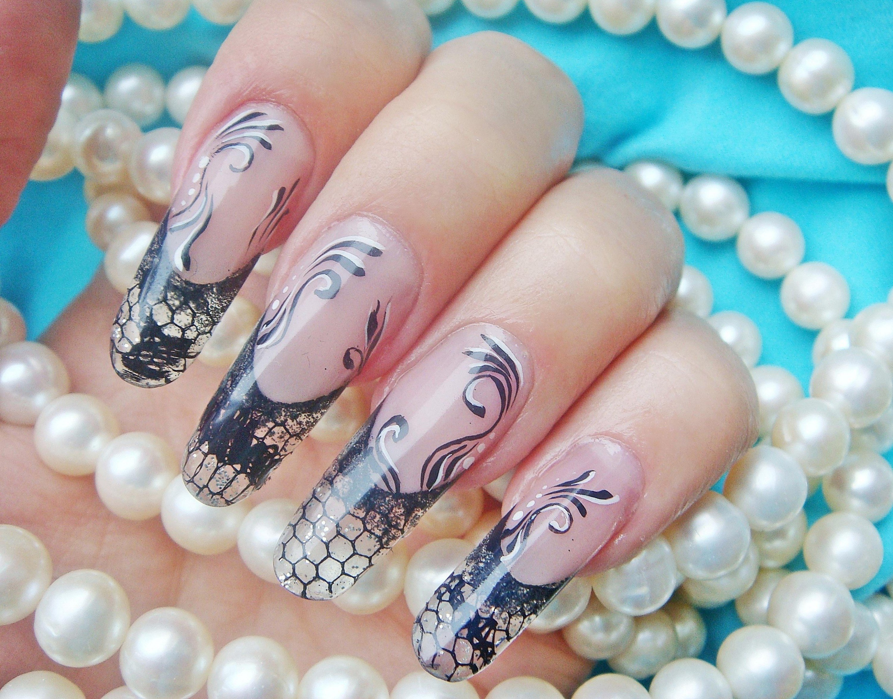 ![Наращивание ногтей с узорами]()