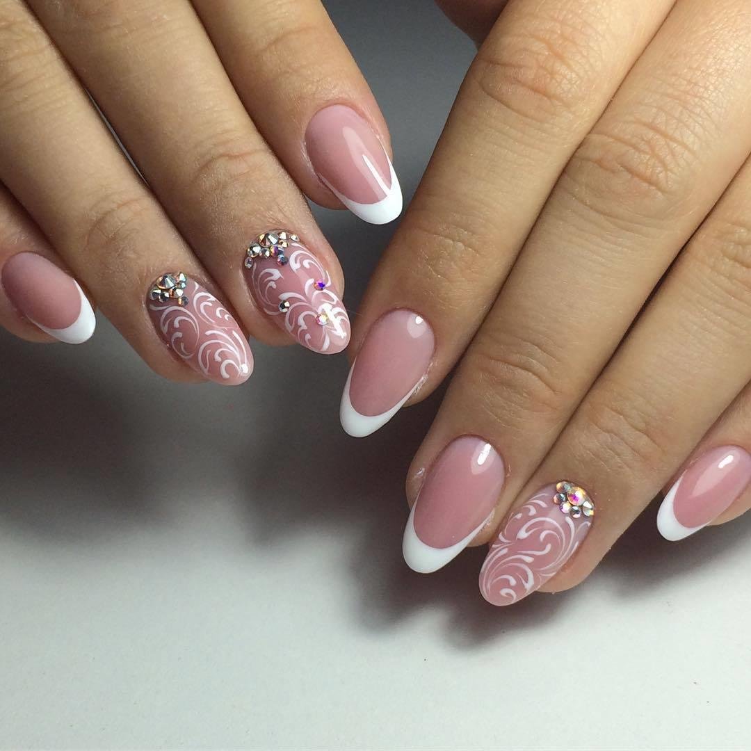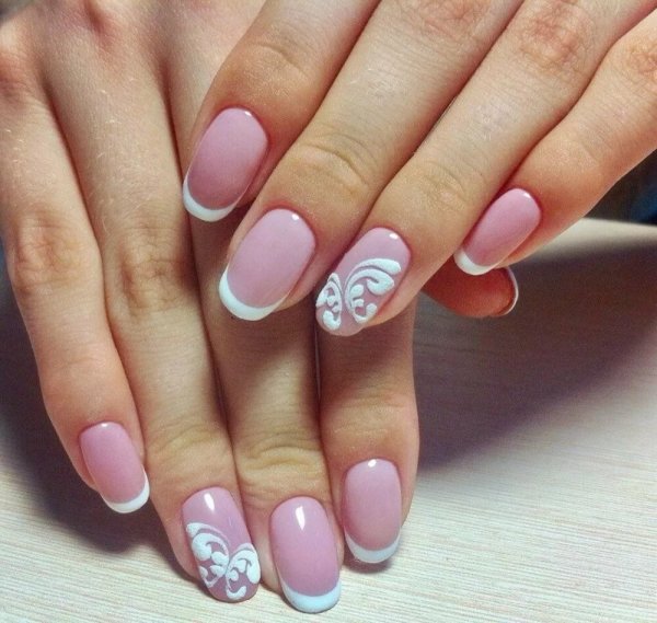 Маникюр френч белый с рисунком красивым