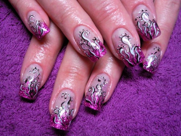 Маникюр с рисунком на кончиках ногтей