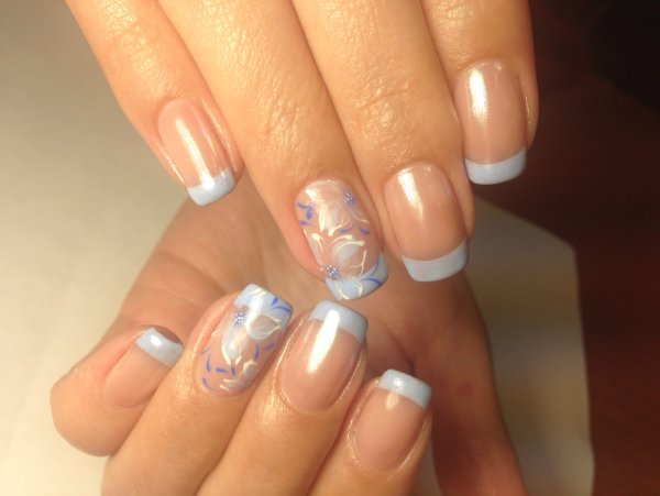 Французский маникюр с цветами