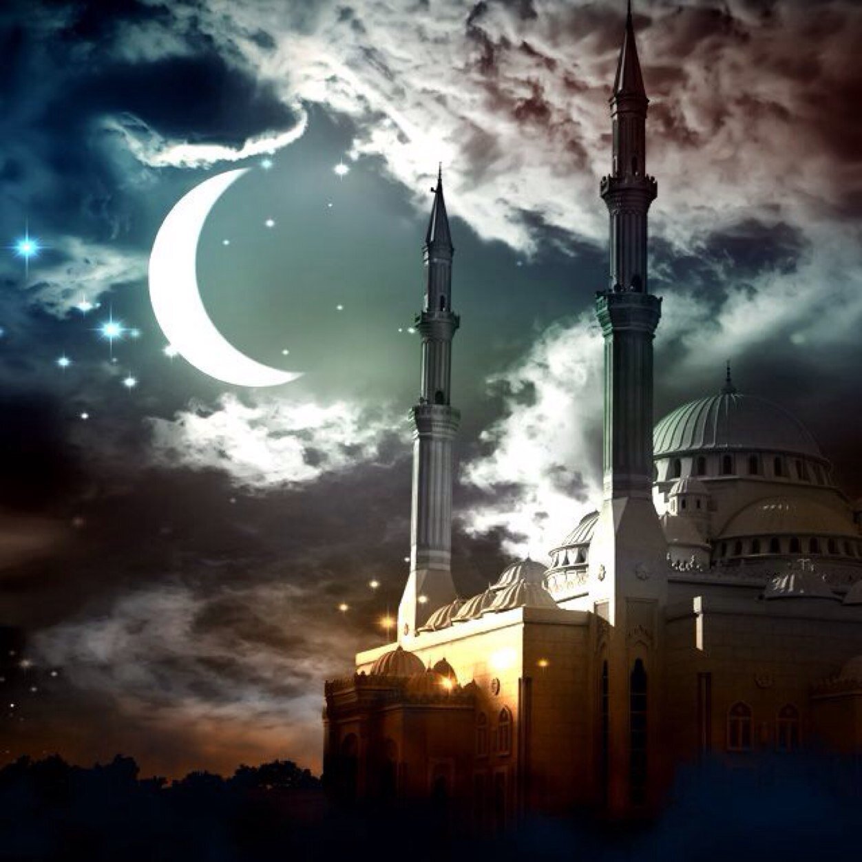 ![Красивый полумесяц с мечетью]()