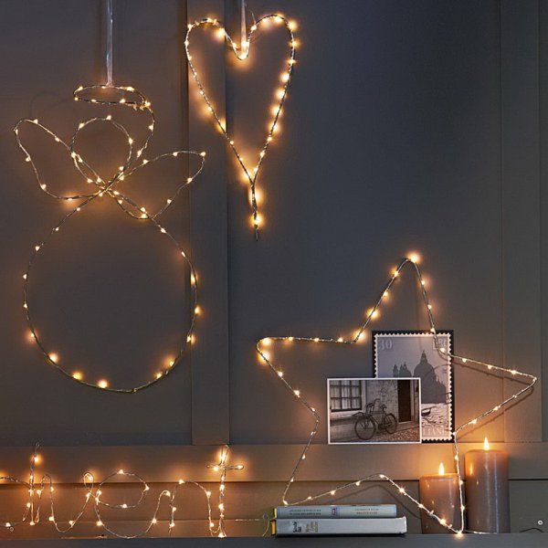 Фигуры из гирлянды на стене