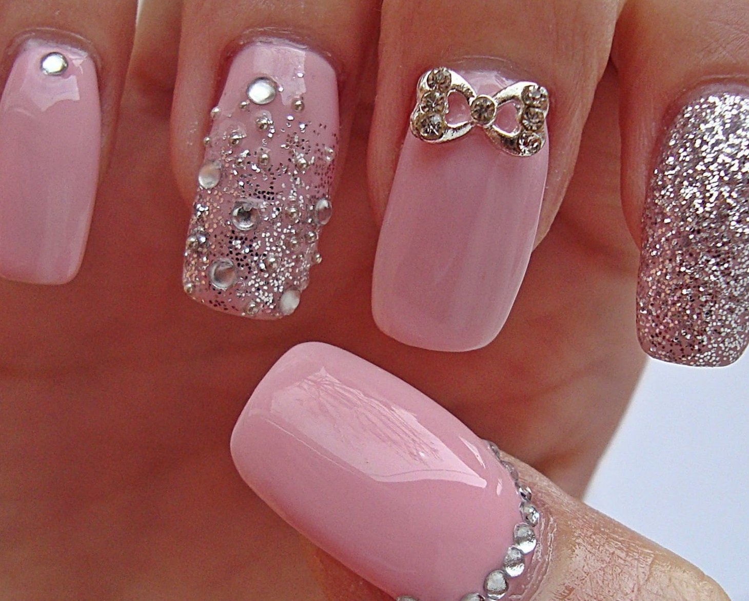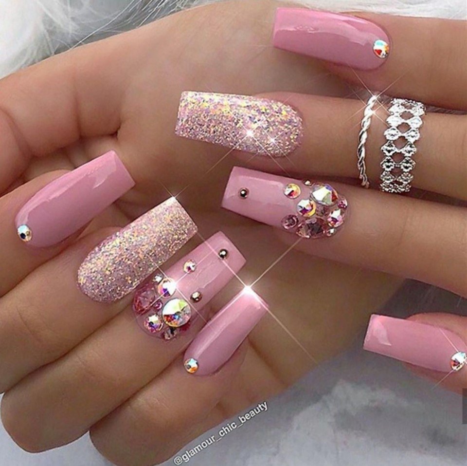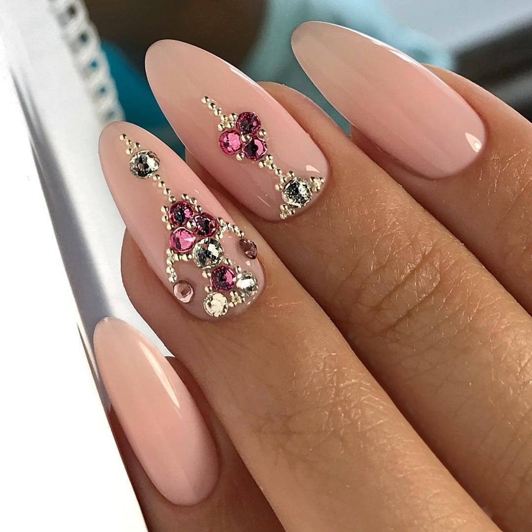 ![Розовые ногти с камушками]()