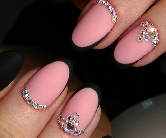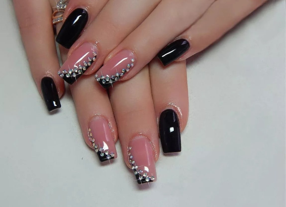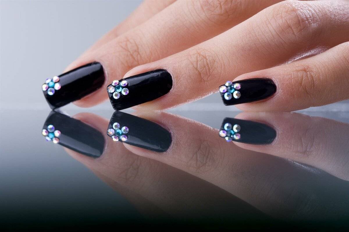 Чёрный маникюр со стразами
