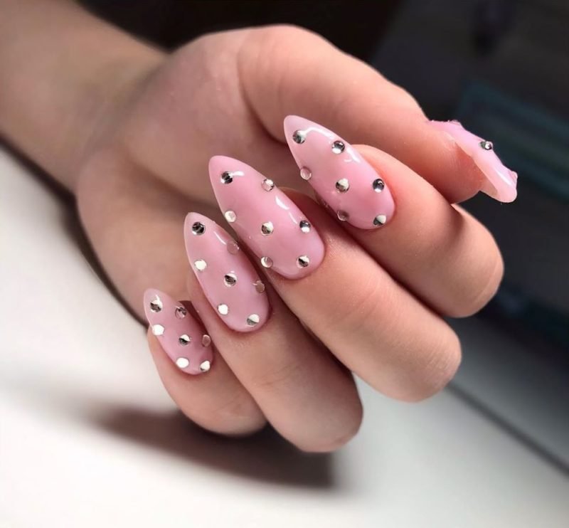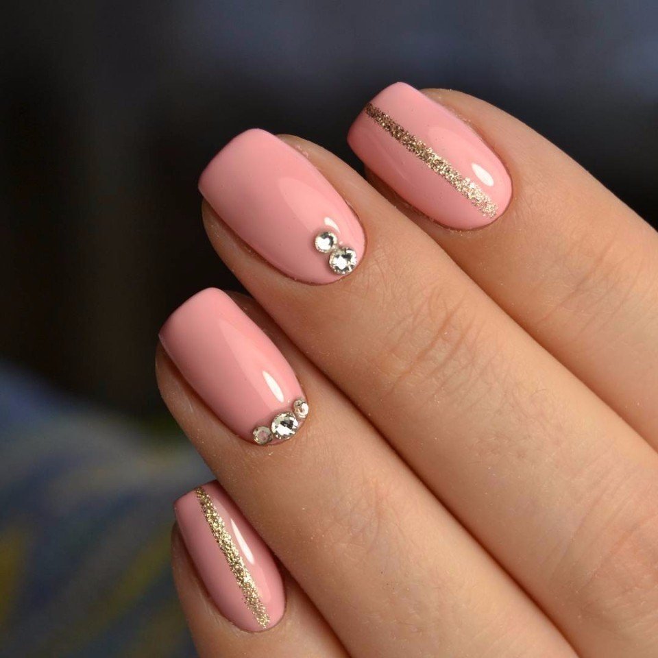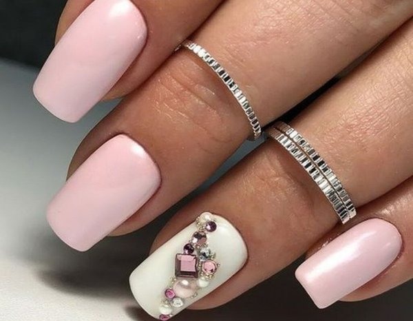 Розовые ногти с камушками