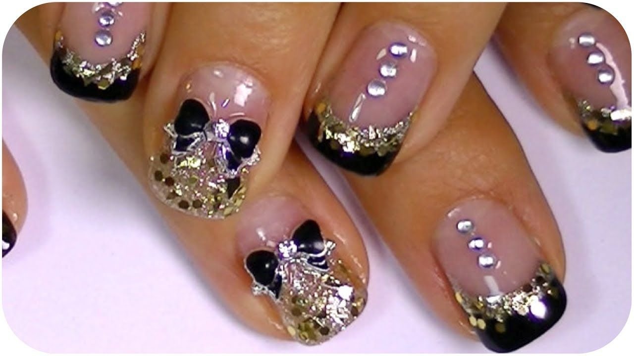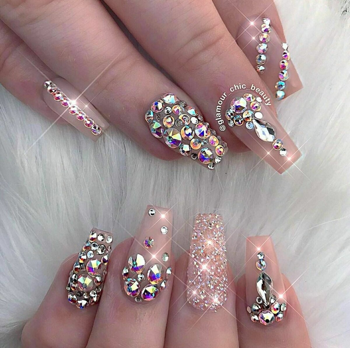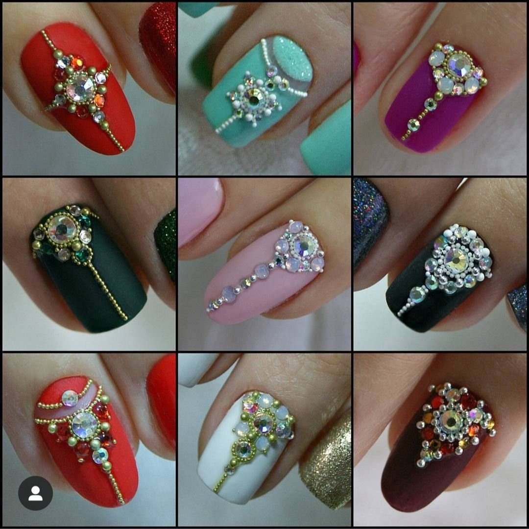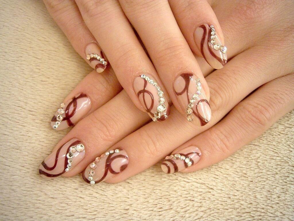 Маникюр со стразами и блестками